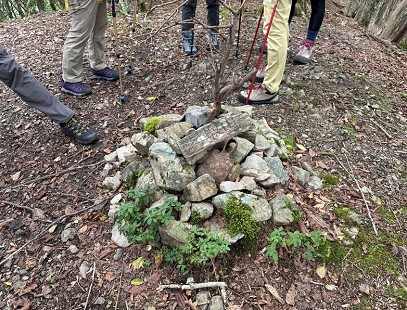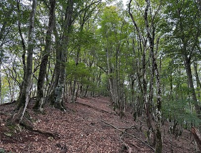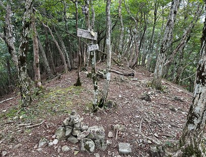 護摩壇山から東に約700m和歌山県最高峰の石標 |