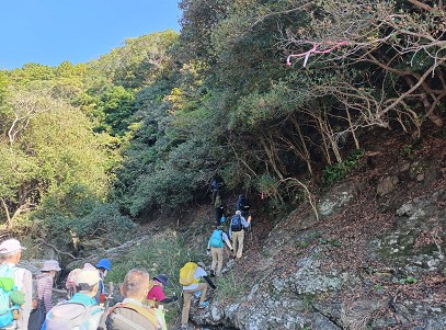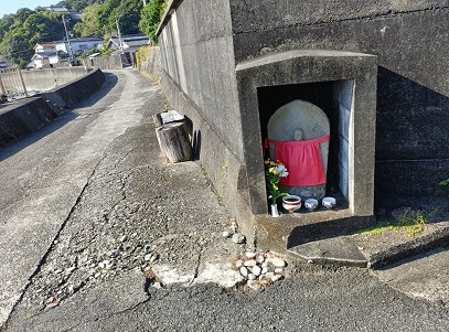さらに歩みを進め、串本町に入ると、石段と石畳が50m以上続く新田平見道があります