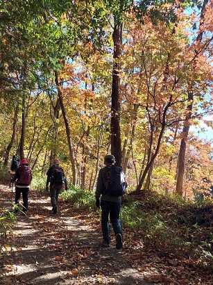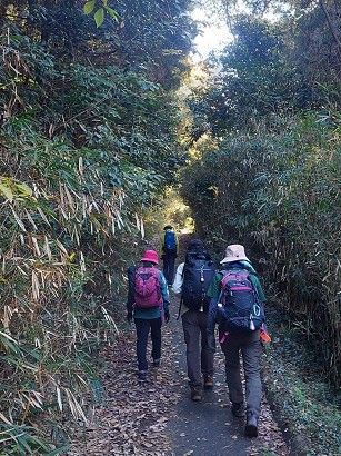 ずっと植林の中を歩いてきたので、自然林が紅葉してとても綺麗です。