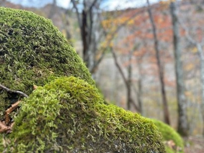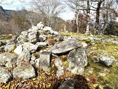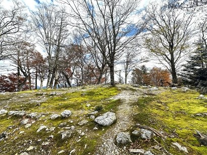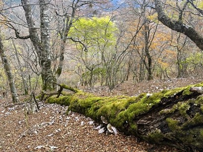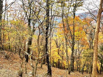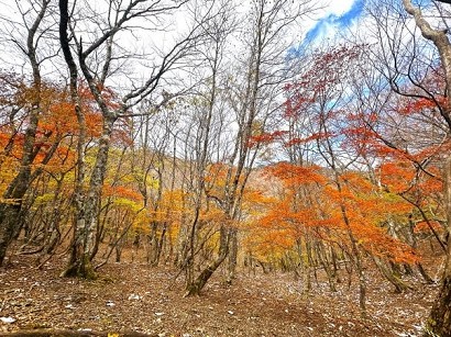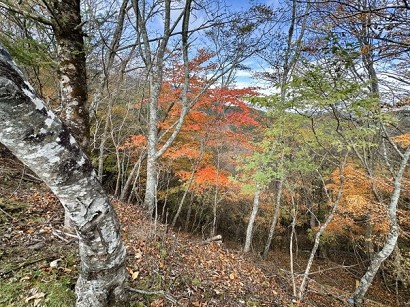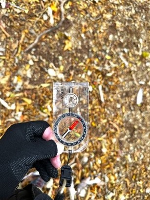 踏み跡が不鮮明のため、コンパスで方向を確認しながら進みます |