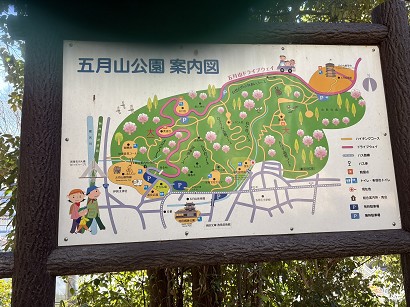 五月山公園を横目に舗装路を歩きます |