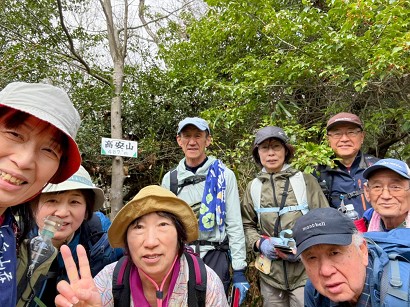 三角点のある高安山で集合写真を撮りました |