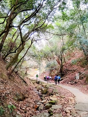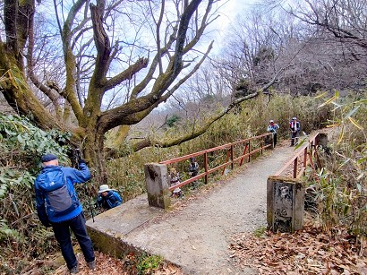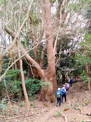 大木の点在する山道を下山しました |