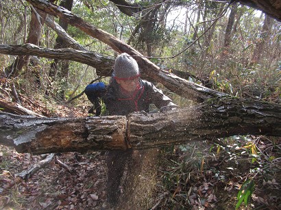 ボランティアが12名参加され、鎌やチェーンソーなど道具持参し、整備を行いました。